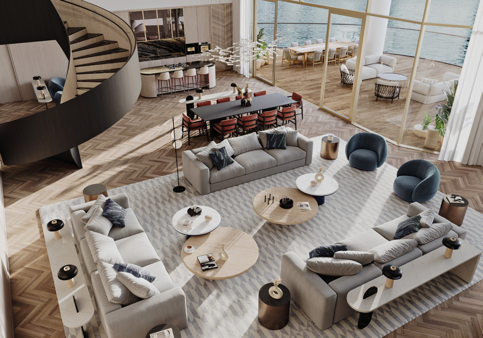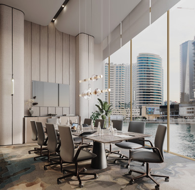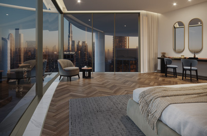 Mit jedem bis zur Perfektion kuratierten Detail, kombiniert mit den feinsten Oberflächen, stellt das Design des Turms sicher, dass seine Besitzer mit einem gehobenen Marken-Wohnerlebnis beschenkt werden, umgeben von privilegierten Ausblicken auf den Dubai Canal und/oder den Burj Khalifa.