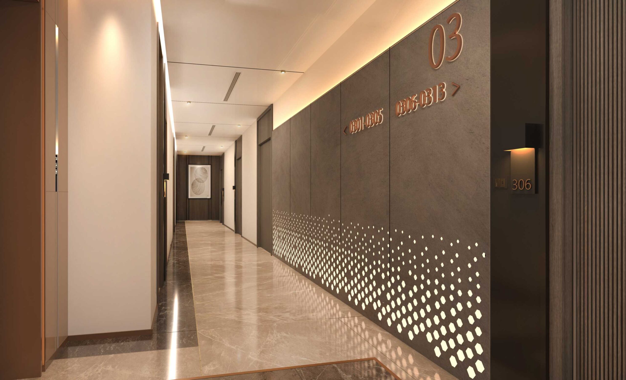 Treten Sie aus den Aufzügen in unsere Designerkorridore, die eine Aura von Raffinesse und Luxus mit einem 5-Sterne-Hotel-ähnlichen Erscheinungsbild ausstrahlen und einen exquisiten Weg schaffen, der zu Ihrem Traumhaus führt!
